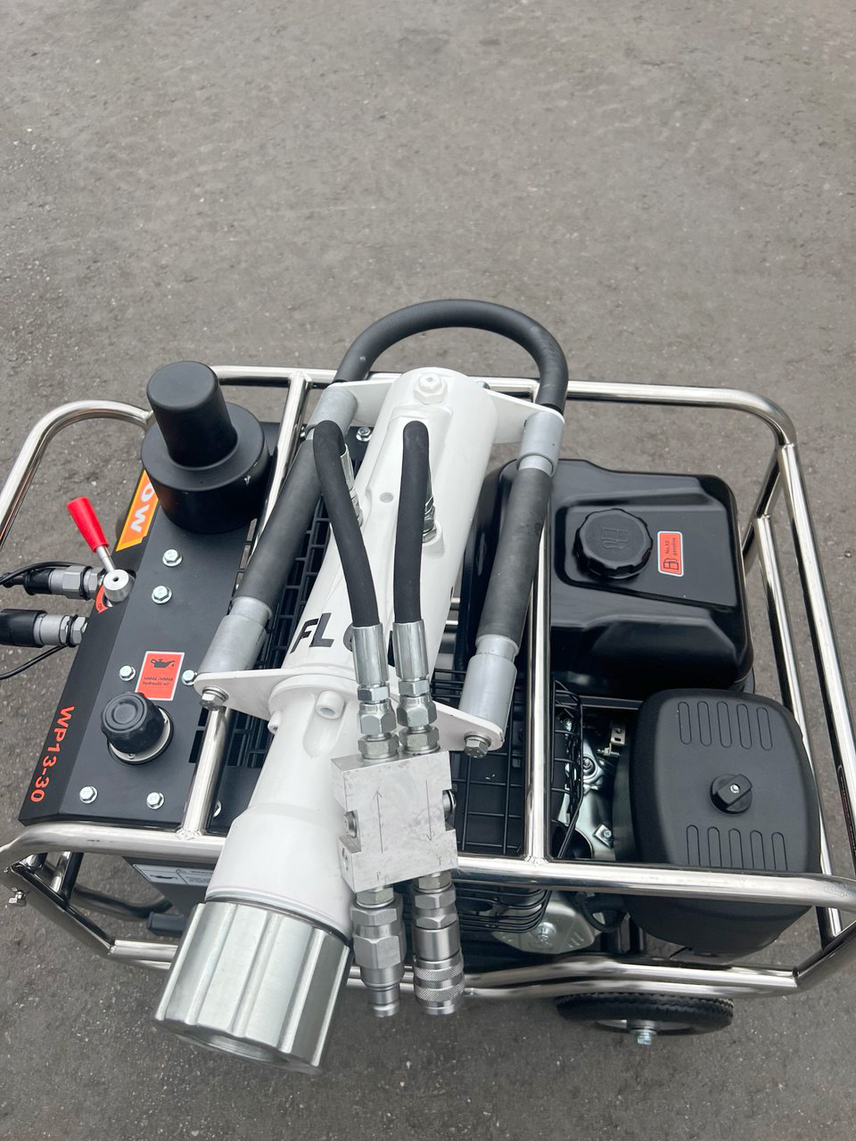 Питание вибропогружателя производится от гидростанции с соответствующими параметрами, или от гидравлической техники (используйте делитель потока).